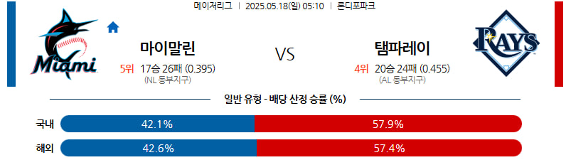05월 18일 MLB 마이애미 탬파베이 MLB분석