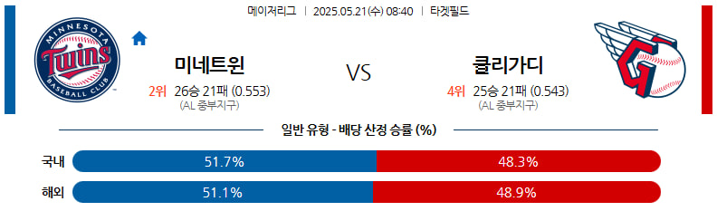 05월 21일 MLB 미네소타 클리블랜드 MLB분석