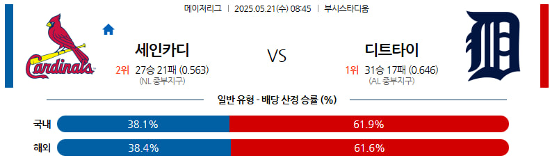 05월 21일 MLB 세인트루이스 디트로이트 MLB분석