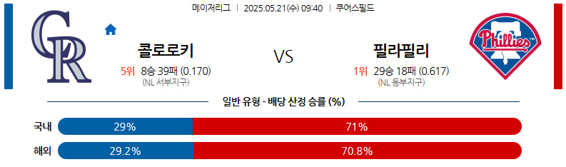 05월 21일 MLB 콜로라도 필라델피아 MLB분석