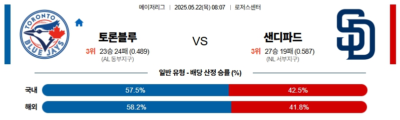 05월 22일 MLB 토론토 샌디에이고 MLB분석