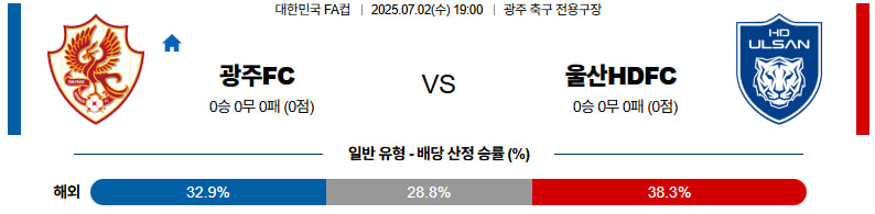 7월2일【 대한민국FA컵 】광주 vs 울산 분석
