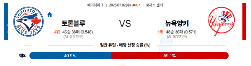2025-07-02 [MLB] 토론토 VS 뉴욕양키스 분석
