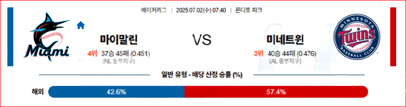 2025-07-02 [MLB] 마이애미 VS 미네소타 분석