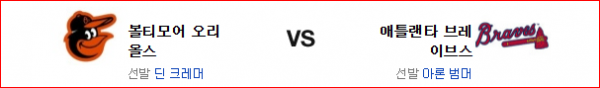 두 팀 모두 홈런에 죽고 산다는 공통점이 있다. 이번 경기 역시 그 점이 확실히 작동할듯. 하지만 애틀랜타는 전체적으로 불펜이 강한 팀은 아니라는게 포인트. 최근 크레이머는 원정 투구가 좋다는 점 역시 무시할수 없다. 다득점이 나오긴 어렵지만 볼티모어의 승리조는 전날 경기에서 이미 그 위력을 증명해 냈다. 투수력에서 앞선 볼티모어 오리올스가 승리를 가져갈 것이다.