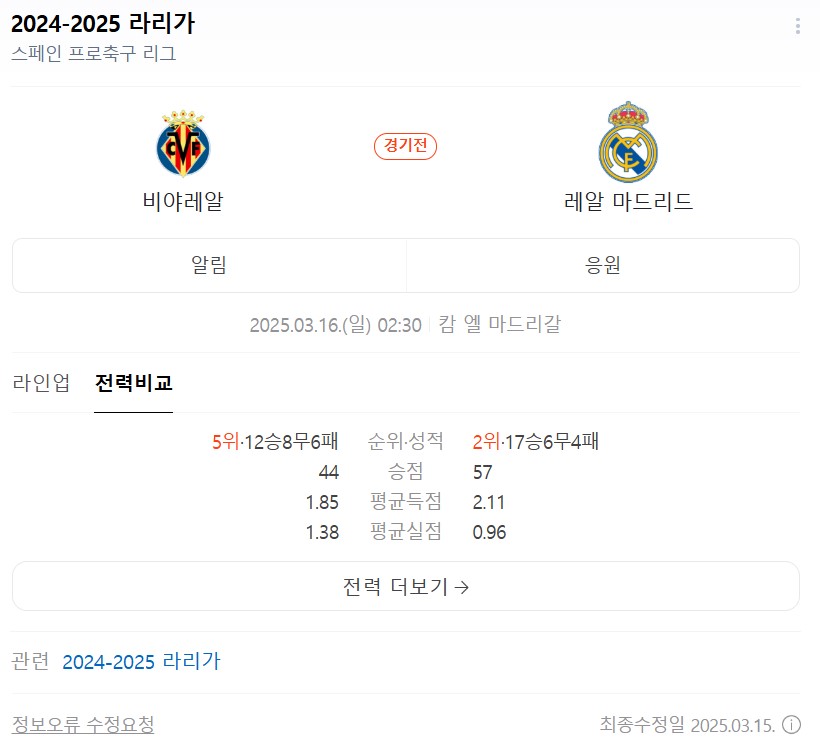 03.16 [프리메라리그] 비야레알 VS 레알마드리드 분석 및 프리뷰 !