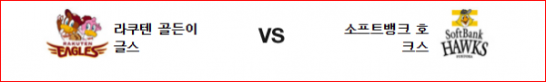 라쿠텐 골든 이글스는 우치 세이류(3승 2패 2.40)가 선발 복귀전을 치른다. 6일 닛폰햄 원정에서 3.2이닝 1안타 무실점의 투구를 보여준 우치는 최근 구원으로 4경기 연속 무실점의 호조를 이어가는 중이다. 그러나 이전에도 불펜 외도 후 복귀전 투구가 좋지 않았기 때문에 이 점이 발목을 잡을 가능성이 높다. 전날 경기에서 우와사와와 소프트뱅크의 불펜을 완파하면서 스즈키 다이치의 2점 홈런 포함 7점을 올린 라쿠텐의 타선은 이번 시리즈에서 놀라운 집중력을 발휘하고 있는 중. 특히 하위 타선이 활발하게 대활약하고 있다는 점이 이채롭다. 타키나카와 완봉 덕분에 불펜이 휴식을 취한건 보너스.