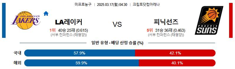# 홈팀 : LA레이커스(40승25패)