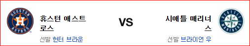 리드를 잡았는데 동점을 허용하고 역전을 내줬다. 휴스턴은 최근 불펜에서 크게 흔들리는 중. 우는 홈에서 대단히 강한 투수라는 강점도 있다. 물론 금년의 브라운은 한단계 더 각성한 모습을 보여주고는 있지만 최근 2경기 투구가 좋지 않고 원정 낮 경기는 언제 흔들려도 이상하지 않다. 선발에서 앞선 시애틀 매리너스가 승리를 가져갈 것이다.