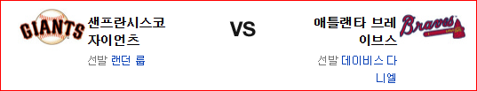 샌프란시스코의 타격이 살아났다. 그러나 애틀랜타 역시 타격은 좋은 흐름을 보여주고 있는 중. 다니엘은 5이닝은 버텨줄수 있는 투수고 루프 역시 QS는 기대할수 있는 편이다. 이번 경기는 후반이 변수인데 지금의 애틀랜타는 불펜의 버티기가 그다지 좋은 팀은 아니다. 후반에 강한 샌프란시스코 자이언츠가 신승을 가져갈 것이다.