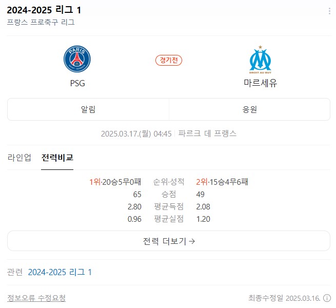 03.17 [리그1] 파리생제르망 VS 마르세유 분석 및 프리뷰 !