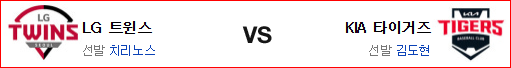 전날 경기는 양 팀의 마무리가 모두 대형 사고를 저지른, 매우 보기 드문 경기였다. 그러나 내상은 KIA가 더할수 밖에 없는 상황. 양 팀의 선발 투수들은 휴식이 충분하지만 상대적인 면을 고려한다면 아무래도 김도현이 더 공략당할 가능성을 무시할수 없다. 그리고 치리노스는 가장 긴 휴식을 취한 댓가를 받을수 있을 것이다. 선발에서 앞선 LG가 승리를 가져갈 것이다.