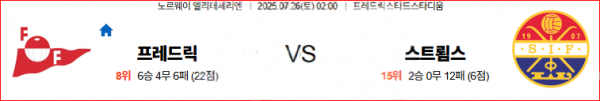 프레드릭스타드FK 스트롬스고드셋 IF 【 노르웨이1부 】분석 20250726