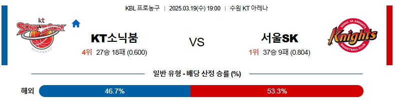 【KBL프로농구】03월19일 수원KT vs 서울SK