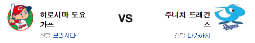 연장 접전 끝에 신승. 두 팀의 대결은 언제나 이런 식이다. 그리고 지난 1주일 전의 흐름을 많이 답습하는 편. 기복이 심한 주니치 타선이라면 모리시타 상대로 나름 승부가 될 것이다. 관건은 히로시마의 타선이 살아나느냐인데 후반기의 타카하시 히로토는 리그 특급 에이스의 투구를 이어가고 있다. 선발에서 앞선 주니치 드래곤즈가 승리를 가져갈 것이다.