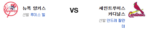 최근 세인트루이스 최대의 문제는 우완 강속구 투수 상대로 힘을 쓰지 못한다는 점이다. 즉, 원정에서 약한 힐 상대로도 고전 가능성이 높다는 것. 반면 팔란테는 한번 흔들리면 한도 끝도 없는 투수다. 양키스의 타선이 좋지 않긴 하지만 세인트루이스 역시 마찬가지고 무엇보다 불펜에서 더 불안한건 세인트루이스다. 투수력에서 앞선 뉴욕 양키스가 승리를 가져갈 것이다.