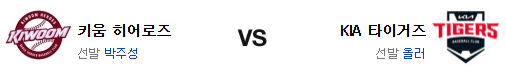 키움은 박주성(1승 2패 6.85)이 시즌 2승에 도전한다. 6일 NC 원정에서 2이닝 4실점의 부진으로 패배를 당한 박주성은 10일의 휴식이 전혀 도움이 되지 않은 모습을 보여주었다. KIA 상대 첫 등판이지만 원정 약점이 발목을 잡을 가능성이 높다. 일요일 경기에서 머피 상대로 임지열의 2점 홈런 포함 3점을 올린 키움의 타선은 이후 KT의 불펜을 공략하지 못한게 역전의 빌미로 이어지고 말았다. 홈에서 페이스가 많이 가라앉은게 원정에서 문제가 될수 있을듯. 4이닝동안 3실점을 허용한 불펜은 도로 엉망이 되어 가는 중.