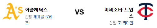양 팀의 선발 투수 모두 최근의 호투 레벨은 대단히 놀랍다. 일단 투수전이 전개가 될 가능성이 높은 편. 결국 후반이 관건인데 미네소타는 잭스와 두란의 빈 자리를 조금씩 메꿔가고 있는 반면 애슬레틱스는 밀러의 빈 자리를 메꾸지 못하고 있고 이 차이가 승부를 가를 것이다. 후반에 강한 미네소타 트윈스가 신승을 가져갈 것이다.