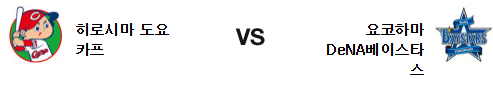 요코하마 베이스타즈는 아즈마 카츠키(11승 6패 2.21)가 시즌 12승 도전에 나선다. 13일 야쿠르트 원정에서 6이닝 2실점의 호투로 승리를 거둔 아즈마는 앞선 2경기의 홈 경기 부진을 벗어나는데 성공했다. 문제는 6일 히로시마와 홈 경기에서 5이닝 6실점 패배를 당했다는 점인데 경기 시작 시간 15분의 차이가 이번엔 호재가 될수 있을 것이다. 전날 경기에서 토코다의 투구에 막히면서 단 1점에 그친 요코하마 의 타선은 좌완에 약한 문제를 다시금 보여준바 있다. 8안타 2볼넷 1점의 집중력 부족은 유독 히로시마전에서 잘 나오는듯. 9회초 등판과 함께 2점 홈런을 허용한 이리에 타이세이는 후반 페이스 하락이 아쉽다.