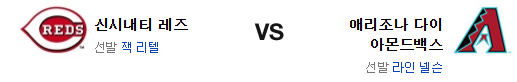 최근 애리조나의 타격은 빈말로도 좋다고 하긴 어려운 편이다. 리텔 공략은 쉽지 않을듯. 그러나 넬슨 역시 홈 경기에 강점이 있는 편이고 신시내티의 타선은 기복이 있는 편이다. 이번 경기는 후반이 변수가 될텐데 최근 애리조나의 불펜은 접전에서 흔들리는 경우가 많고 결국 이 점이 승부를 가를 것이다. 후반에 강한 신시내티 레즈가 신승을 가져갈 것이다.