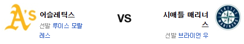애슬레틱스의 타격이 살아났다. 그러나 상대가 시애틀, 그것도 브라이언 우라면 이야기가 다를듯. 모랄레스의 직전 경기 투구는 좋은 편이었지만 원정에서의 제구 문제가 있고 시애틀은 애슬레틱스 이상으로 한 방이 있는 편이다. 선발에서 앞선 시애틀 매리너스가 승리를 가져갈 것이다.