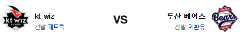 연승을 거두는 동안 두산의 강점은 후반 집중력이었다. 그러나 전날 그게 반대로 넘어갔다는건 두산에게 매우 치명적인 부분. 제환유의 피칭 스타일은 최민석의 그것과 닮아있고 이는 KT 상대로 매우 불리하게 작용할수 있다. 게다가 머피는 어쨌든 5이닝은 잘 막을수 있고 전날 두산은 불펜이 무너진 후유증이 크다. 선발에서 앞선 KT가 승리를 가져갈 것이다.