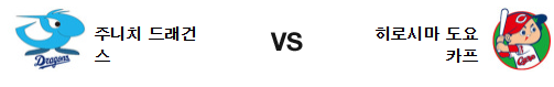 주니치 드래곤즈는 카네마루 유메토(1승 4패 3.14)가 시즌 2승에 도전한다. 15일 DeNA와 홈 경기에서 6이닝 2실점의 투구를 보여준 카네마루는 안정적인 투구를 이어가는 중이다. 다만 홈에서 원정으로 나가는건 거의 2달여만인데 야외 구장 투구가 더 좋다는 점에 승부를 걸수 있을 것이다. 전날 경기에서 모리시타와 히로시마의 불펜을 공략하면서 홈런 2발 포함 5점을 올린 주니치의 타선은 이번 시리즈에서 기대 이상의 타격을 과시하는 중. 또 하나의 홈런을 터트린 호소카와 세이야는 여름이 되면서 그야말로 폭발적 화력을 보여주는 중이다. 그러나 이번 경기에선 마무리 마츠야마가 나오지 못한다.