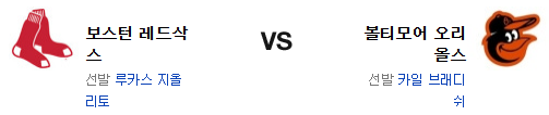 보스턴 레드삭스는 루카스 지올리토(8승 2패 3.72)가 시즌 9승 도전에 나선다. 22일 양키스 원정에서 4.2이닝 3실점의 부진한 투구를 보여준 지올리토는 원정에서 4경기중 3경기에서 5이닝을 채우지 못하는 문제가 계속 이어지고 있는 중이다. 볼티모어가 약팀이라고 해도 이 문제는 쉽게 극복하지 못할수 있다. 전날 경기에서 스가노 상대로 홈런 2발로 4점을 올린 보스턴의 타선은 어려울수도 있는 상황을 잘 돌파했다는게 다행스럽다. 역전 3점 홈런을 터트린 제일런 두란은 팀의 디퍼런스 메이커임을 증명중. 피츠 이후 4이닝을 무실점으로 막은 불펜은 승리조의 위력이 대단하다.