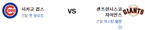 샌프란시스코의 타선은 좌완 상대 최근 타율이 빈말로도 좋다고 할수 없는 편이다. 그야말로 홈런포에 승부를 걸고 있는데 하필 홈이라는게 더 문제일듯. 물론 벌랜더가 직전 경기에서 부진하다고는 하지만 홈이라는 잇점이 있고 패턴상 좋은 투구도 기대해볼수 있다. 이번 경기는 불펜 대결의 가능성이 높지만 후반으로 갈수록 웃을수 있는건 컵스다. 후반에 강한 시카고 컵스가 신승을 가져갈 것이다.