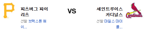 이번 시리즈에서 세인트루이스는 강속구 공략이 안되고 있다. 그 말인 즉슨 애쉬크래프트 상대로도 고전 가능성이 높다는 이야기. 최대한 마이콜라스가 버텨줘야 하고 어느 정도는 되겠지만 후반이 또 달라질 것이다. 상성에서 앞선 피츠버그 파이어리츠가 신승을 가져갈 것이다.