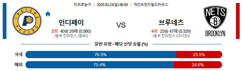 # 홈팀 : 인디애나 페이서스(40승29패)