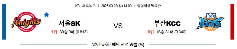 # 원정팀 : 부산 KCC 이지스(16승31패, 8위)