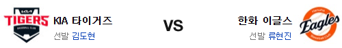 KIA는 김도현(4승 6패 4.43)이 시즌 5승에 도전한다. 27일 SSG 원정에서 6이닝 7안타 무실점의 호투를 보여준 김도현은 후반기 최고의 투구를 해냈다고 해도 과언이 아니다. 한화 상대로 금년 첫 등판인데 반등의 흐름을 이어가느냐가 관건이다. 일요일 경기에서 KT의 투수진 상대로 홈런 2발 포함 6점을 올린 KIA의 타선은 타선의 집중력 자체는 좋은 모습을 보여주었다. 특히 8회에 역전을 만든게 포인트. 그러나 정해영이 2점차읠 리드를 날려버린건 이번 시즌 포기하라는 이야기와도 같다.