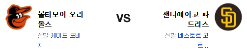 그럼에도 불구하고 볼티모어가 초반 포비치의 제구가 살아난다면 변수를 만들 수 있지만, 종합적으로는 샌디에고 우세다.