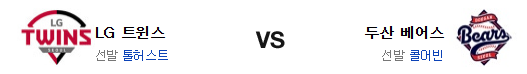 두 팀 모두 타격의 호조는 놀라울 정도다. 다만 LG는 하루의 휴식을 취한 반면 두산은 창원에서 바로 올라왔다는 변수가 있는 상황. 게다가 두산의 경우 불펜의 소모도 절대로 무시할수 없기도 하다. 톨허스트는 일단 호투를 기대할수 있는 투수임을 절대로 부정할수 없는 레벨. 하지만 어빈의 투구는 최근 기복이 심하고 LG의 후반 타격은 무시무시하다. 전력에서 앞선 LG가 승리를 가져갈 것이다.