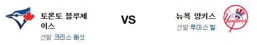 두 팀 모두 원정 타격은 호조였다. 그러나 그걸 시리즈에 이어간건 토론토였다는게 포인트. 특히 강속구 투수인 슬리틀러를 공략했다는건 힐 상대로도 충분히 승부가 된다는 이야기. 반면 전날 양키스의 타선은 타격감이 확 떨어지는 문제를 드러냈고 가즈먼에게 고전한 타선은 서져에게도 좋은 모습을 보여주기 힘들어 보인다. 어차피 불펜이 좋지 않은건 매한가지다. 힘에서 앞선 토론토 블루제이스가 승리를 가져갈 것이다.