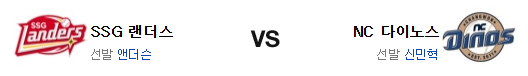 비록 연패에서 탈출하긴 했지만 NC의 타격은 현 시점에서 빈말로도 좋다고 할수 없는 편이다. 이번 경기 역시 앤더슨 공략이 쉽지 않을듯. 결국 신민혁이 SSG 타선을 막아줄수 있느냐가 관건인데 정면 승부를 고집하는 신민혁의 스타일은 SSG와는 상극에 가깝고 앤더슨은 제 몫을 해낼 것이다. 게다가 불펜의 차이가 크다. 투수력에서 앞선 SSG가 승리를 가져갈 것이다.