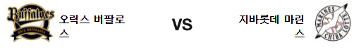 치바 롯데 마린스는 이시카와 슈타(4승 6패 5.08)가 시즌 5승 도전에 나선다. 2일 닛폰햄과 홈 경기에서 5.2이닝 8실점의 부진으로 패배를 당한 이시카와는 상대 전적을 그대로 따라가는 문제를 드러내고 있는 중이다. 26일 오릭스 원정에서 6이닝 1실점 호투를 하는등 이번 시즌 오릭스 상대 방어율이 무려 0.89라는건 시사하는 바가 크다. 전날 경기에서 에스피노자와 카타야마를 공략하면서 4점을 올린 치바 롯데의 타선은 1회말 3점이 말해주듯 집중력 자체는 좋은 편이다. 이후 단 1점이 말해주듯 딱 한번만 터져서 문제다. 4이닝동안 1실점을 허용한 불펜은 요코야마의 실점이 아쉽다.