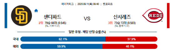 【MLB메이저리그】09월11일 샌디에이고 vs 신시내티 mlb 생중계,스포츠분석,스포츠중계