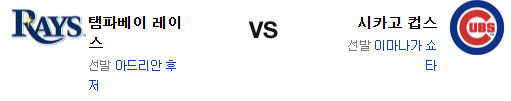 컵스는 이겨야 할 경기를 놓친 반면 탬파베이는 멋진 역전극을 거두었다. 결국 불펜이 중요하다는 이야기. 그래도 이마나가는 낮 경기 강점이 엄청난 투수고 홈이라는 잇점도 있다. 반면 하우저는 아직도 자신의 감각을 챶는데 애를 먹고 있다. 전날 컵스의 불펜이 흔들리긴 했지만 마무리가 나오지 않았다는걸 생각해야 한다. 선발에서 앞선 시카고 컵스가 승리를 가져갈 것이다.