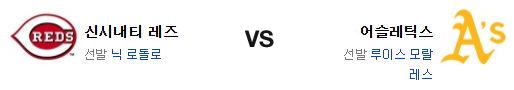 신시내티 레즈는 닉 로돌로(8승 7패 3.10)가 시즌 9승에 도전한다. 9일 샌디에고 원정에서 5이닝 2안타 무실점의 호투를 보여준 로돌로는 추가 휴식이 호투에 도움이 된듯한 모습을 보여준바 있다. 문제는 이번 경기는 그러한 추가 휴식 없이 던진다는 점인데 원정의 기복을 일단 줄여야 할 것이다. 전날 경기에서 세베리노 상대로 홈런 2발로 올린 5점이 득점의 전부였던 신시내티의 타선은 5회부터 제대로 된 공격을 하지 못하면서 한계점이 명확하게 드러난바 있다. 특히 후반의 집중력 부재는 뼈아픈 부분. 5.2이닝동안 6실점을 허용한 불펜은 중요한 투수들이 모두 무너진게 뼈아프다.