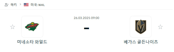 3월26일 09:00 NHL 미네소타 와일드 vs 베가스 골든나이츠 아이스하키분석