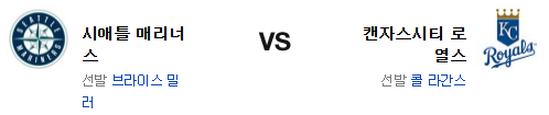 캔자스시티의 타선은 다시 본 모습으로 돌아갔다. 반면 시애틀은 원정에서 완벽하게 살아난게 포인트. 랄리와 캔존의 홈런은 팀의 집중력을 올릴수 있는 부분이다. 레이간스는 건강하면 위력적이지만 금년 투구가 좋지 않고 이닝 소화력 변수도 있다. 밀러 역시 원정에서 기대할수 없지만 화력전으로 간다면 유리한건 시애틀이다. 힘에서 앞선 시애틀 매리너스가 승리를 가져갈 것이다.