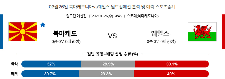 【월드컵 예선전】03월26일 북마케도니아 vs 웨일스 월드컵 예선