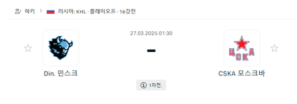 3월27일 01:30 KHL 디나모 민스크 vs CSKA 모스크바 아이스하키분석