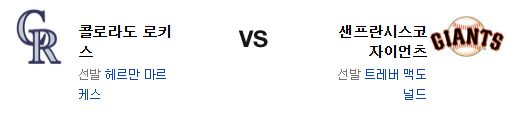 마르퀘즈의 원정은 기대를 하면 안된다. 맥도날드 역시 아직까지는 기복이 있는 편. 하지만 타선의 레벨 자체가 크게 차이가 나고 불펜 역시 콜로라도 상대로 무너질 타선은 아니다. 전력에서 앞선 샌프란시스코 자이언츠가 승리를 가져갈 것이다.