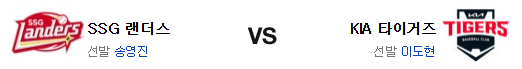 전날 경기에서 KIA는 역전패를 당한 반면 SSG는 기적의 역전승을 거두었다. 특히 젊은 타자들의 활약 여부가 두 팀의 승패를 갈랐다고 해도 과언이 아닐듯. 현 시점에서 이도현과 송영진 모두 선발로서 기대하기 힘들다는 공통점이 있는 편. 하지만 송영진은 그래도 선발로서 제 몫은 해낼수 있는 투수인 반면 이도현은 그게 어렵고 이는 불펜도 매한가지다. 전력에서 앞선 SSG가 승리를 가져갈 것이다.