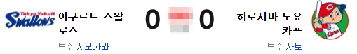 야쿠르트 스왈로즈는 시모카와 슌스케(1승 1패 3.04)가 시즌 2승에 도전한다. 23이 주니치와 홈 경기에서 7이닝 3안타 2실점의 호투를 하고도 패배를 당한 시모카와는 저속 잠수함의 강점을 보여준바 있다. 히로시마 상대로 5이닝 3실점 홈 경기 승리를 거두긴 했지만 원정이라는 점에서 호투를 이어갈 가능성은 매우 낮아 보인다. 전날 경기에서 사이토와 한을 공략하면서 키타무라 케이고의 솔로 홈런 포함 6점을 올린 야쿠르트의 타선은 원정에서 집중력을 보여주었다는 점이 긍정적이다. 무라카미가 터지지 않아도 이길수 있는 타선이 된다는게 너무 늦긴 했다. 3이닝을 무실점으로 막은 불펜은 내년이 즐거울듯.