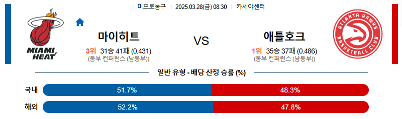 【NBA 프로농구】 03월 28일 마이애미 vs 애틀랜타