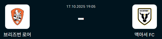 브리즈번 로어 맥아서 FC 【 호주A리그 】 해외축구분석 무료중계 2025-10-17